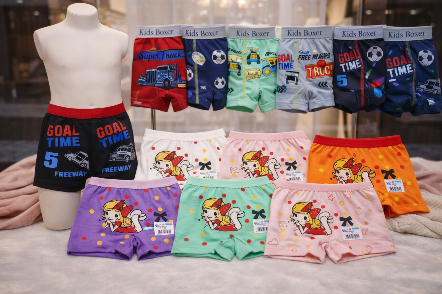 A: The underwear is made from soft, breathable cotton designed for everyday comfort and gentle wear on children’s skin.